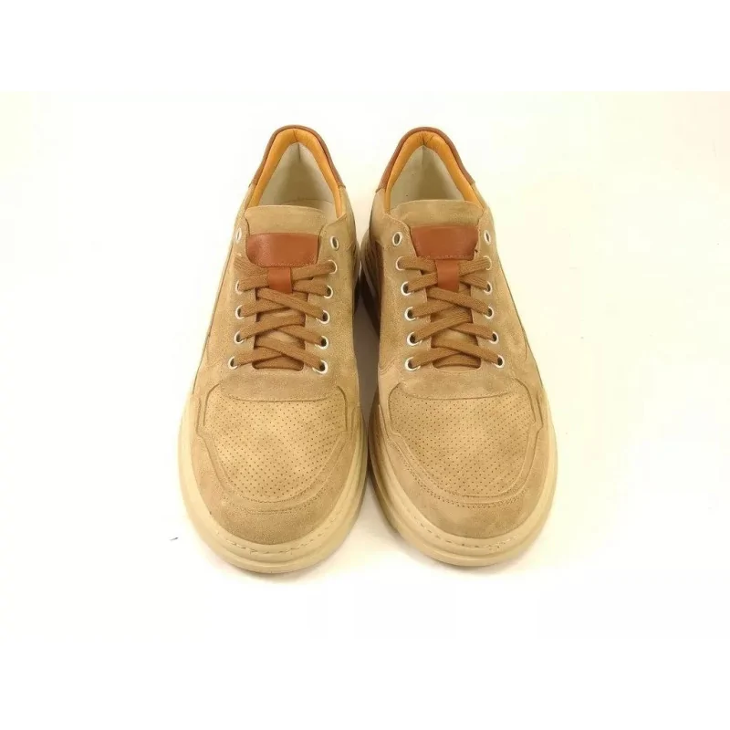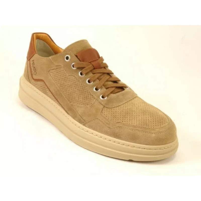 Beżowe sneakersy zamszowe casual Pilpol Prato PC217 to lekkie obuwie codzienne wykonane z naturalnej skóry o perforowanej strukturze. Model posiada klasyczne sznurowanie, miękką podeszwę oraz nowoczesną, miejską linię, która idealnie sprawdza się w stylizacjach casual i smart casual.