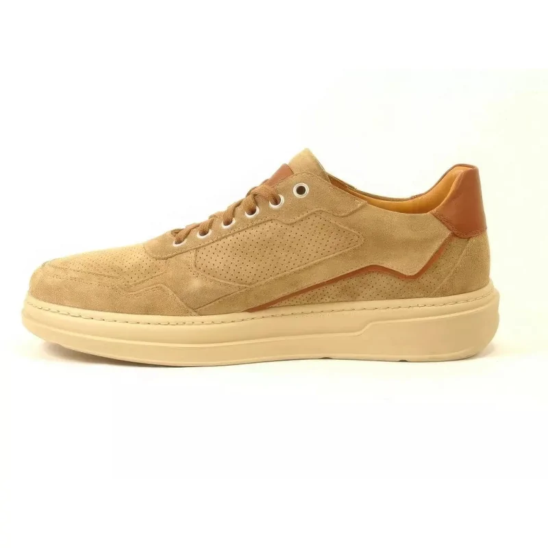 Cholewka została wykonana z wysokiej jakości skóry naturalnej zamszowej o miękkiej strukturze, co znacząco podnosi komfort noszenia oraz trwałość obuwia. Perforowane panele boczne i przednia część buta poprawiają wentylację stopy, dzięki czemu beżowe sneakersy zamszowe casual świetnie sprawdzają się w cieplejsze dni oraz podczas całodziennego użytkowania.