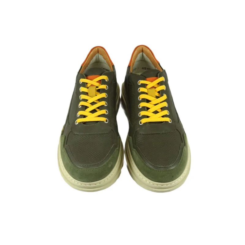 Cholewka wykonana została z naturalnej skóry licowej oraz elementów perforowanych, które poprawiają cyrkulację powietrza i komfort noszenia. Skórzane wykończenie zwiększa trwałość obuwia oraz nadaje mu bardziej elegancki charakter niż klasyczne sneakersy tekstylne. Brązowe sneakersy skórzane casual doskonale łączą sportową stylistykę z miejską elegancją.