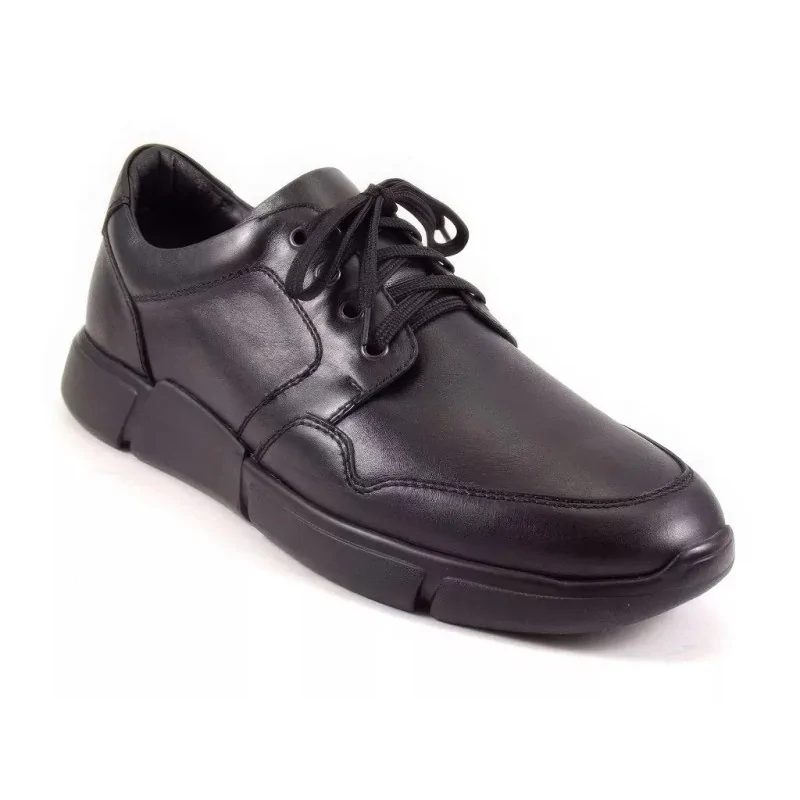 Buty casual czarne męskie Pilpol PC176 to wygodne obuwie codzienne wykonane ze skóry naturalnej, osadzone na lekkiej piankowej podeszwie. Nowoczesna linia, miękka konstrukcja oraz komfortowa amortyzacja sprawiają, że model idealnie sprawdza się w stylizacjach casual i smart casual.