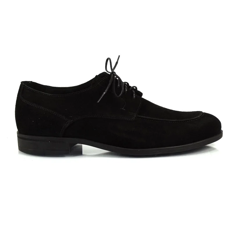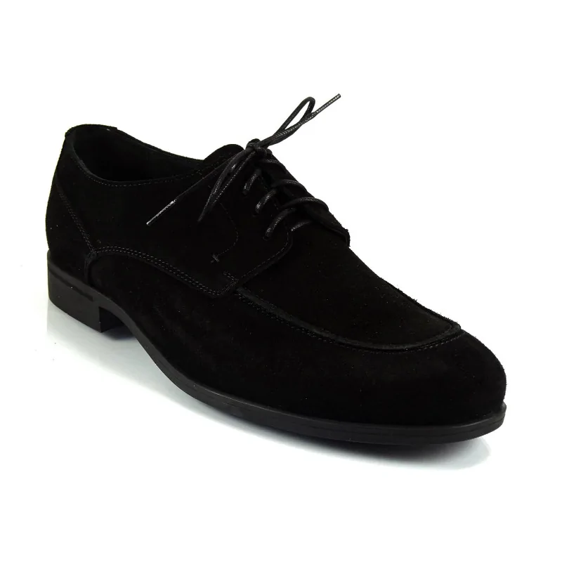 Czarne derby zamszowe casual Pilpol Prato PW218 to model z wysokiej jakości zamszu z otwartą przyszwa i miękką, swobodną linią cholewki. Idealne do stylizacji smart casual, zapewniają komfort, lekkość oraz elegancki, mniej formalny charakter.