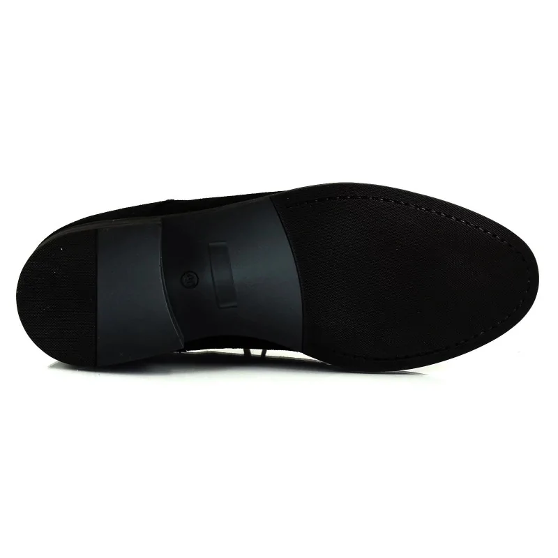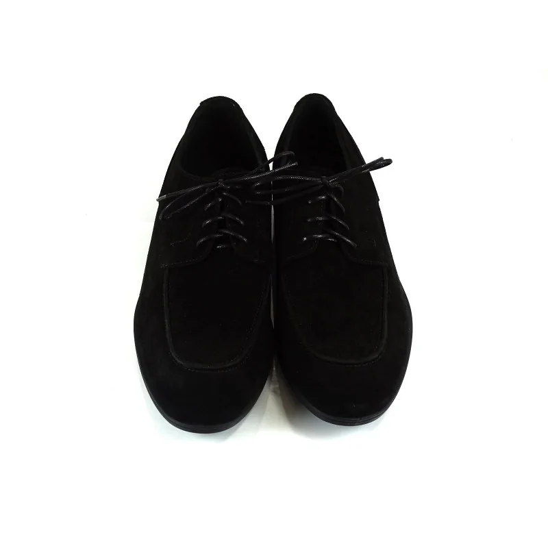 Cholewka została wykonana z wysokogatunkowego zamszu, który wyróżnia się miękką strukturą oraz eleganckim, matowym wykończeniem. Dzięki temu czarne derby zamszowe casual prezentują się bardziej swobodnie niż klasyczne modele ze skóry licowej, zachowując jednocześnie stylowy charakter. Naszywany przód (apron toe) oraz delikatne przeszycia nadają butom nowoczesnej estetyki.