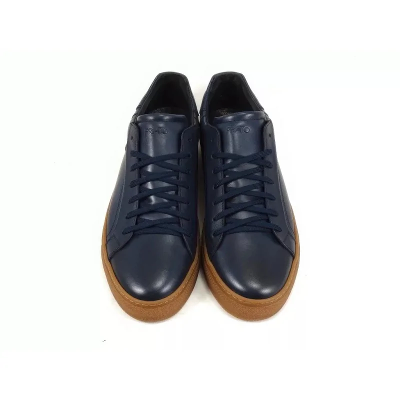 Granatowe trampki skórzane casual Pilpol Prato PC238 to minimalistyczne obuwie miejskie wykonane z wysokiej jakości skóry naturalnej. Model posiada klasyczne sznurowanie, gładką cholewkę oraz elastyczną gumową podeszwę w kontrastowym, karmelowym odcieniu.