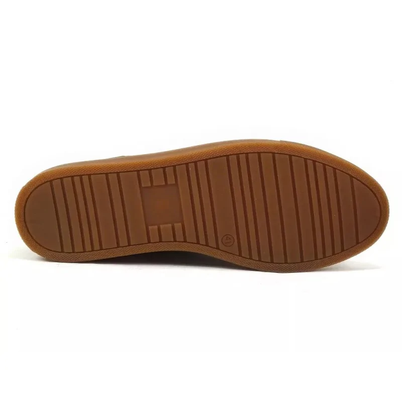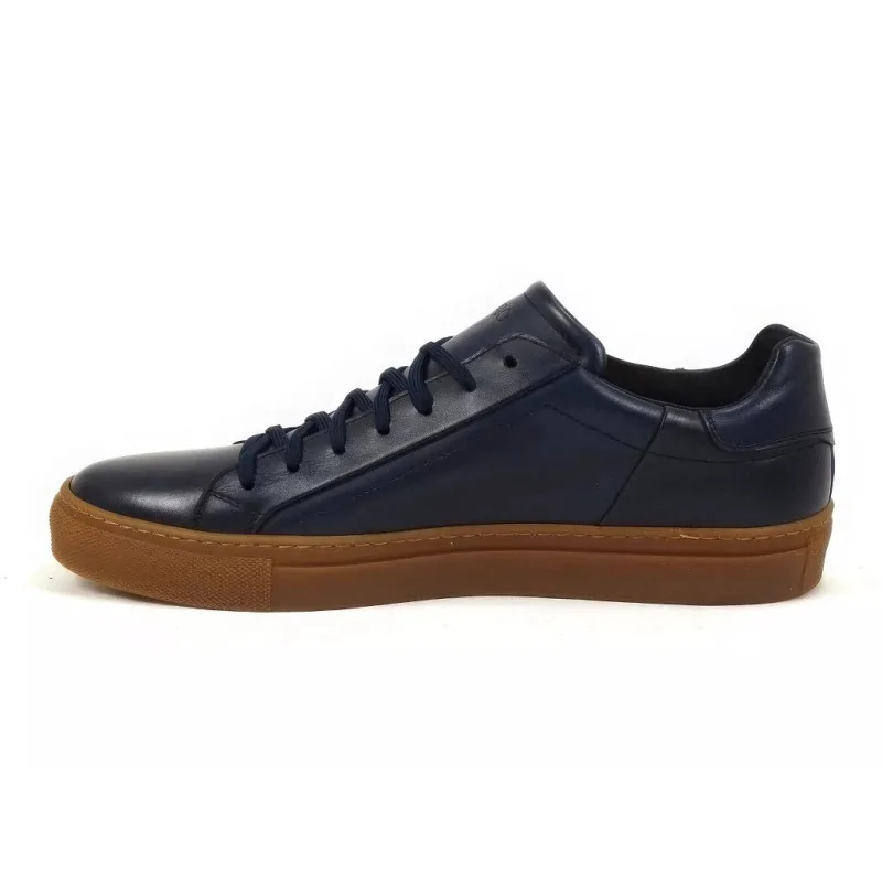 Model wyposażony jest w elastyczną, gumową podeszwę o sportowym profilu, która zapewnia dobrą przyczepność oraz amortyzację. Kontrast między granatową cholewką a karmelową podeszwą nadaje butom nowoczesnego, miejskiego charakteru. Dzięki solidnej konstrukcji granatowe trampki skórzane casual sprawdzają się w dynamicznym trybie życia.