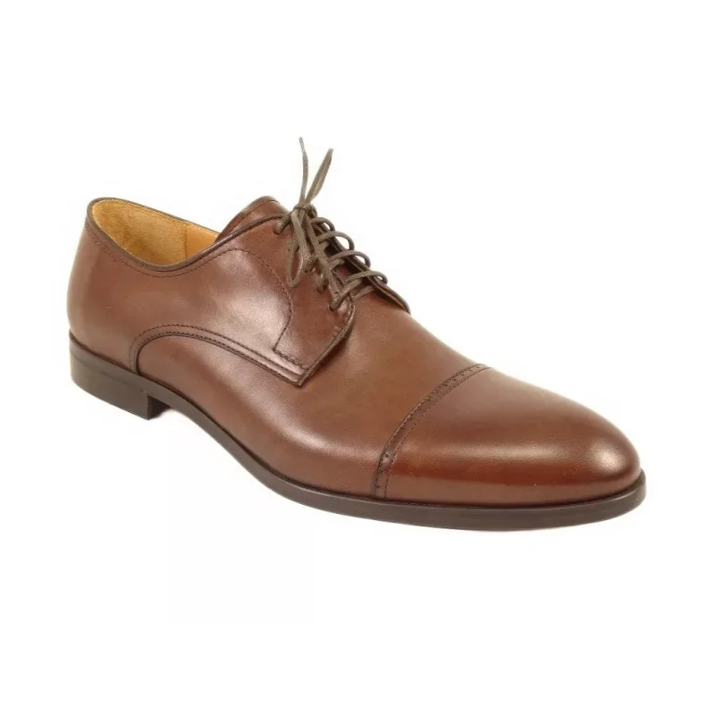 Derby Orzechowe Pilpol Prato PW112 to ekskluzywne derby cap toe wykonane z najwyższej jakości skóry naturalnej, osadzone na eleganckiej skórzanej podeszwie. Klasyczna otwarta przyszwa, nakładany nosek i szlachetny odcień orzecha tworzą formalne obuwie premium do garnituru, biznesu i wyjątkowych okazji.