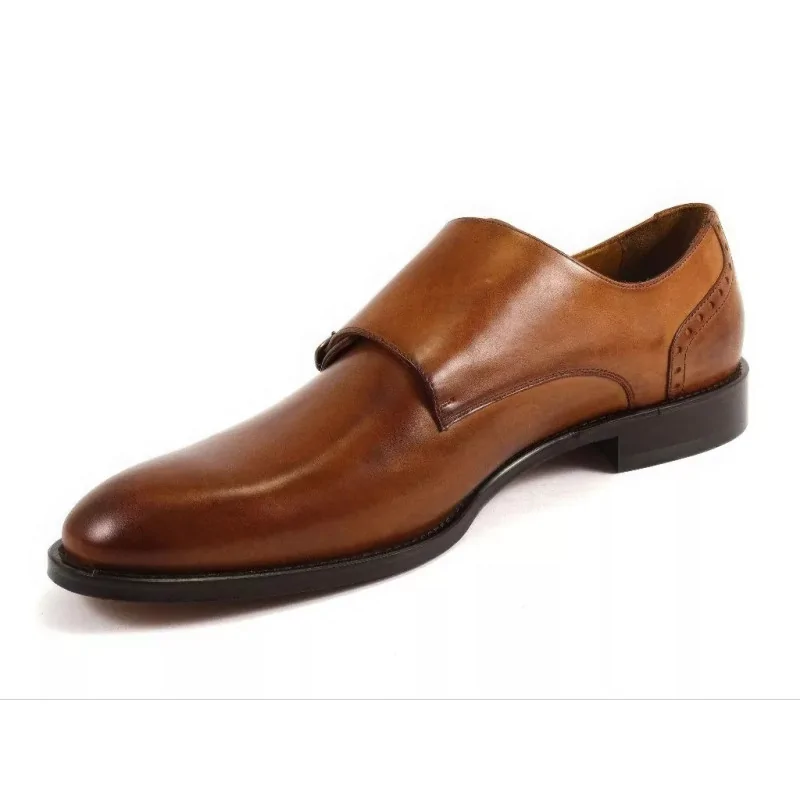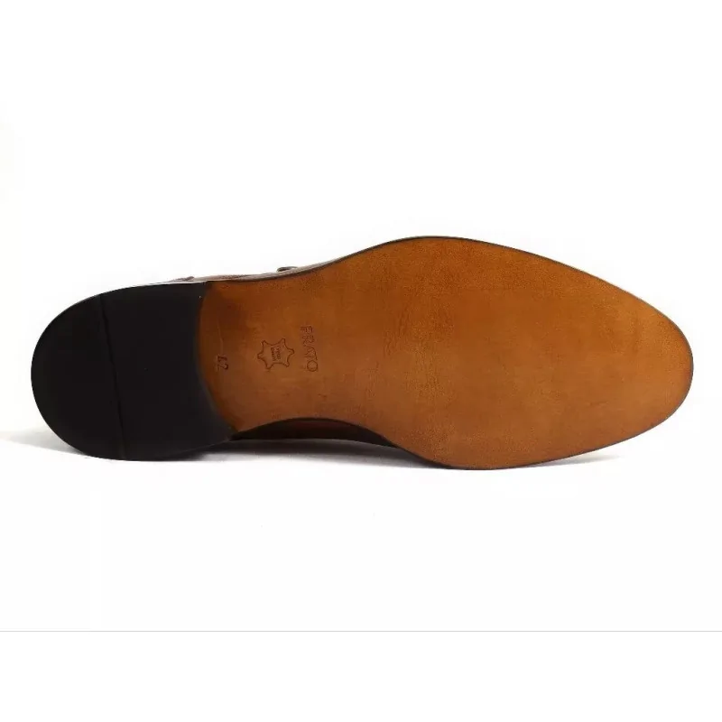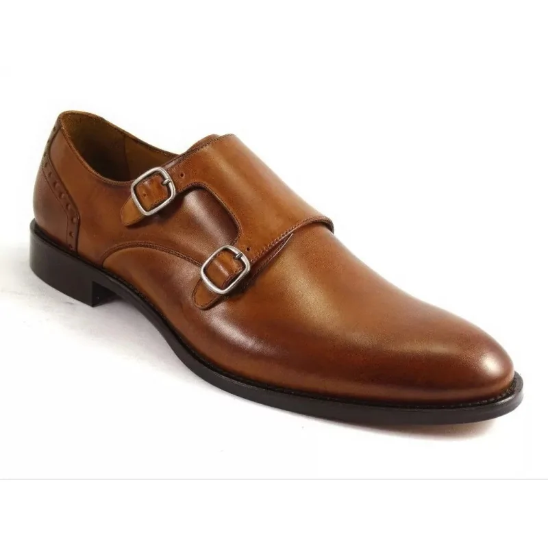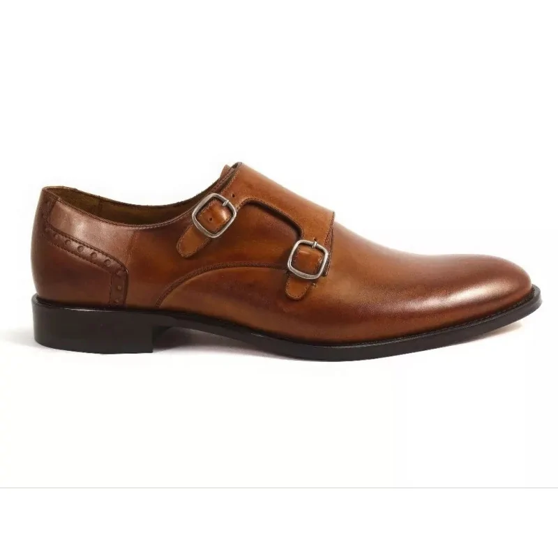 Cholewka została wykonana z najwyższej klasy skóry naturalnej, starannie selekcjonowanej pod względem struktury i elastyczności. Gładka, koniakowa powierzchnia subtelnie pracuje ze światłem, podkreślając głębię koloru. Zapięcie na dwie metalowe klamry nie tylko zapewnia doskonałe dopasowanie, ale również stanowi charakterystyczny element stylistyczny, który odróżnia monki od klasycznych derby czy oksfordów.