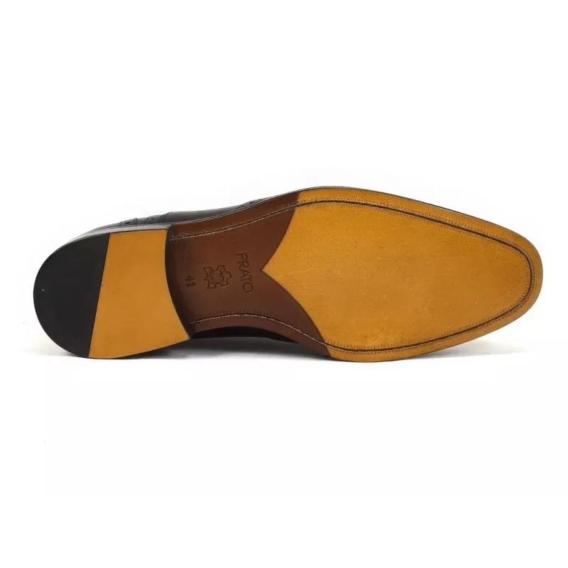 Wnętrze wykonane ze skóry naturalnej poprawia oddychalność i dopasowanie do stopy, co jest szczególnie istotne w obuwiu wizytowym klasy premium. Linia Prato marki Pilpol słynie z precyzyjnego wykończenia oraz selekcji najlepszych skór.