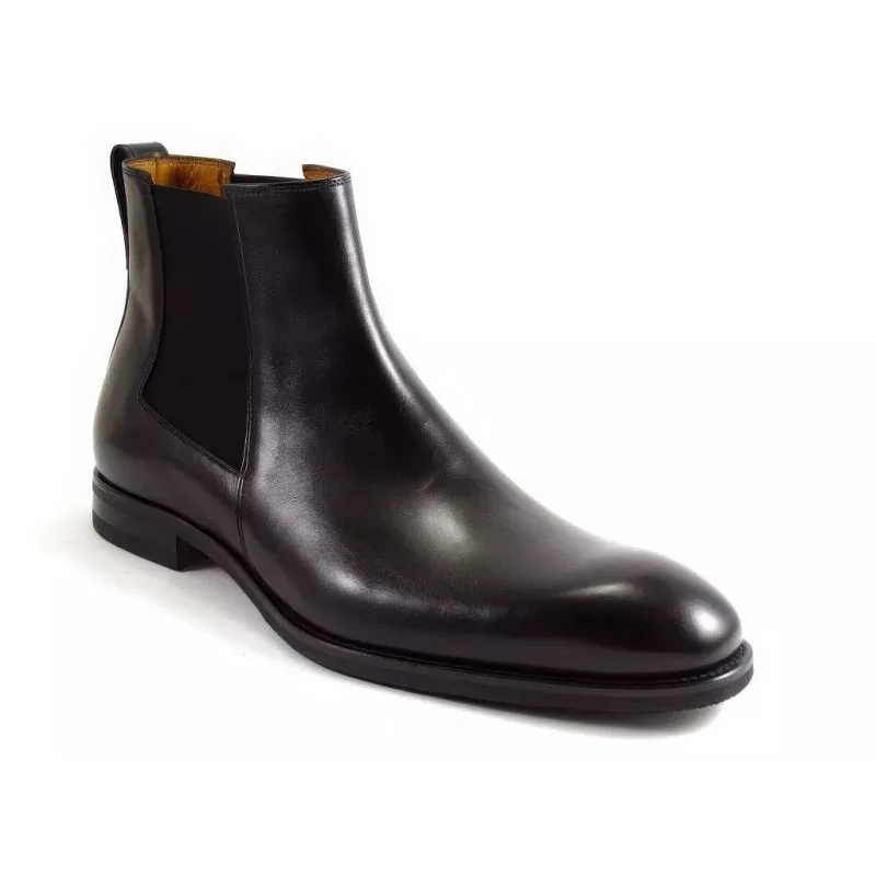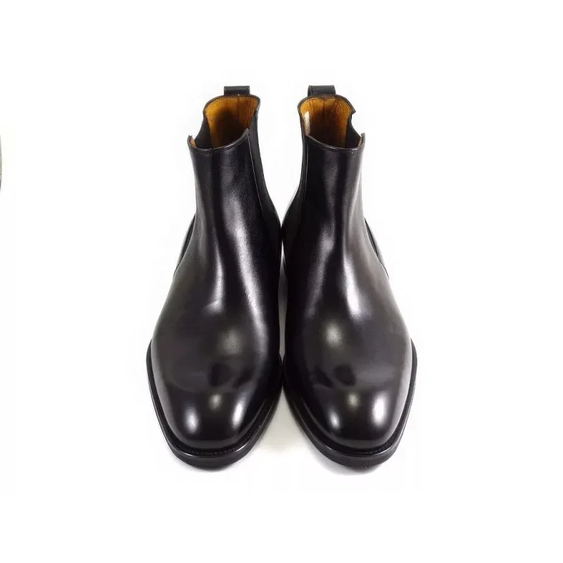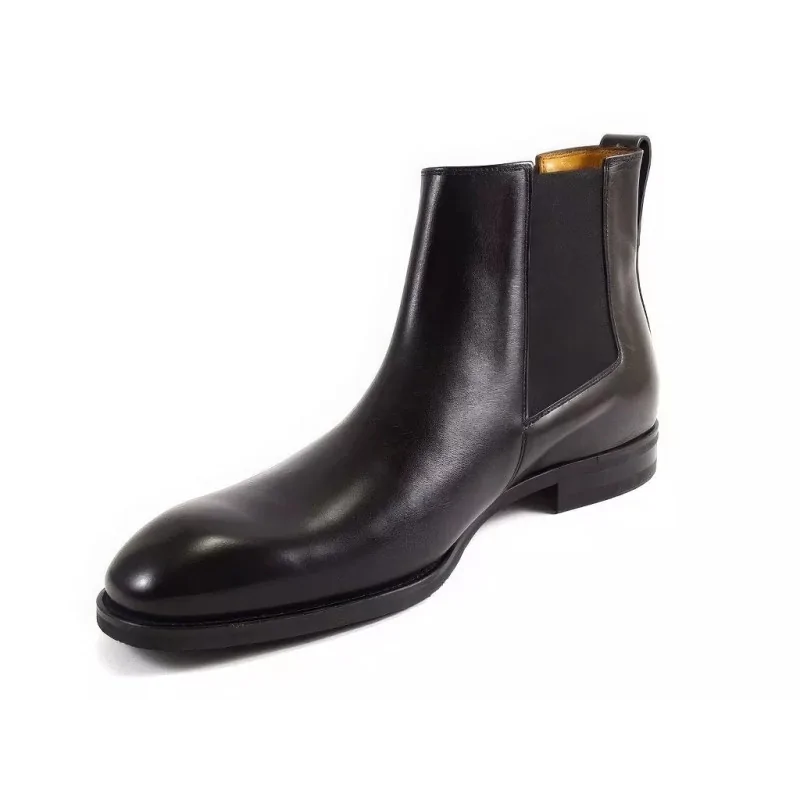 Eleganckie sztyblety czarne w segmencie premium, wykonane z wysokiej jakości skóry naturalnej, z dwiema elastycznymi gumami po bokach i skórzanym wnętrzem. Klasyczne męskie sztyblety skórzane o smukłym kopycie, idealne do stylizacji biznesowych, wizytowych i smart casual.