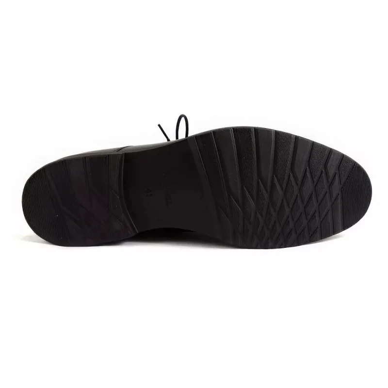 Wnętrze obuwia zostało wyposażone w komfortową ocieplinę (bez futra), która skutecznie chroni przed chłodem, zachowując odpowiednią przewiewność. Lekka piankowa podeszwa zapewnia dobrą amortyzację oraz wygodę podczas długiego chodzenia po miejskich nawierzchniach. Dzięki temu trzewiki zimowe czarne sprawdzą się zarówno w pracy, jak i podczas codziennego użytkowania w chłodne dni.