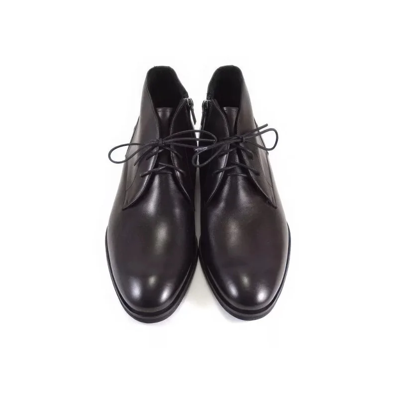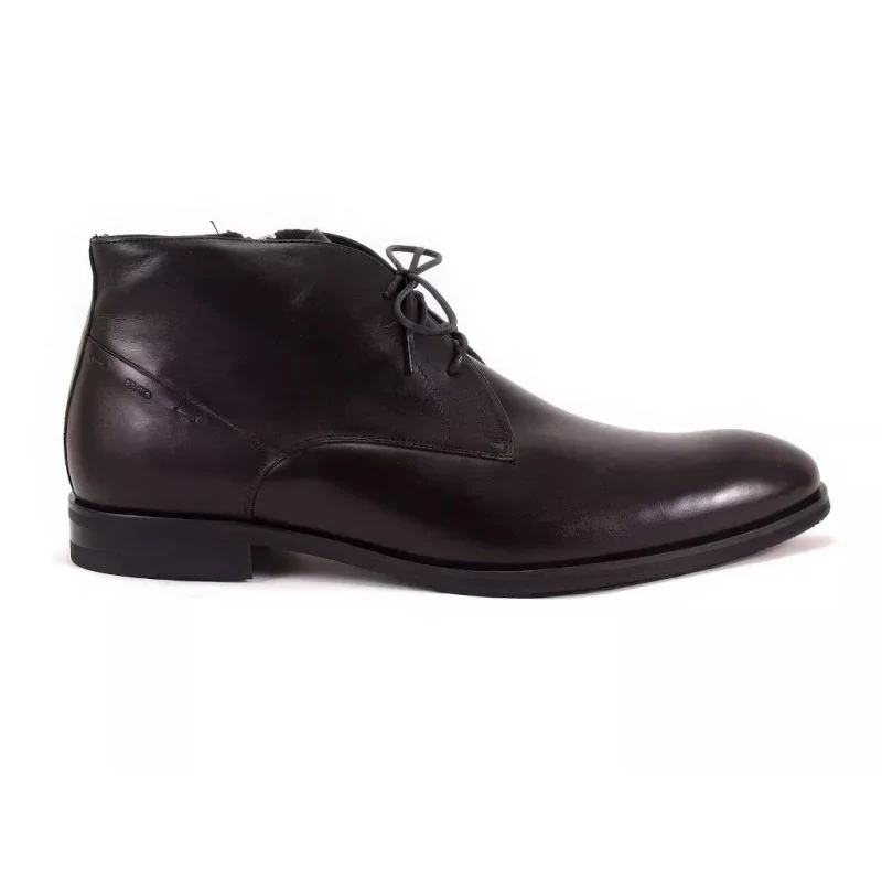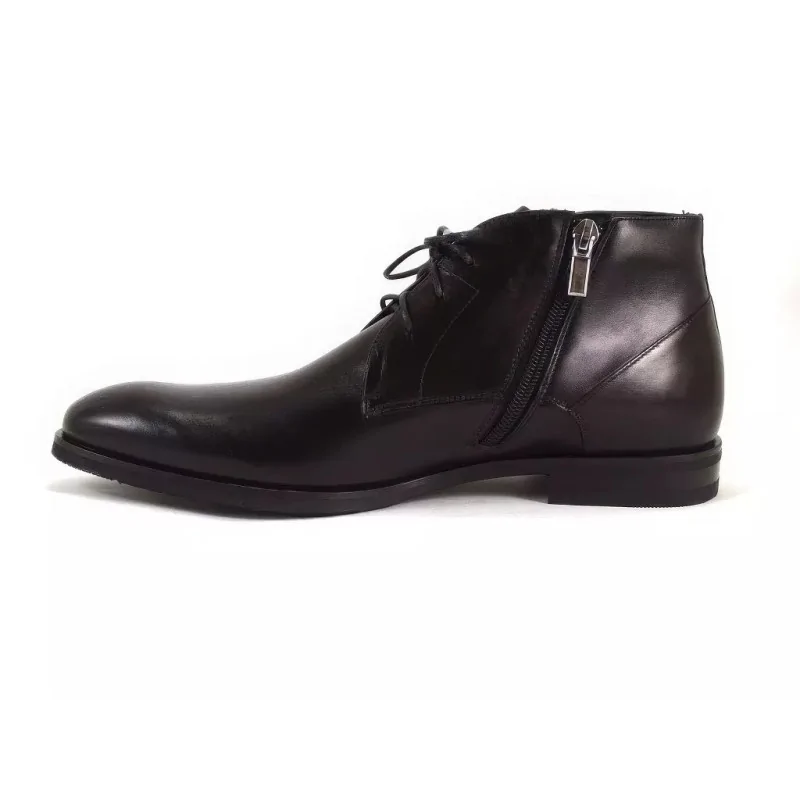 Eleganckie trzewiki zimowe czarne w fasonie derby, wykonane z wysokiej jakości skóry naturalnej, z ociepliną oraz suwakiem od wewnętrznej strony. Komfortowe męskie buty zimowe premium o klasycznej linii, idealne do stylizacji biznesowych i smart casual w sezonie zimowym.