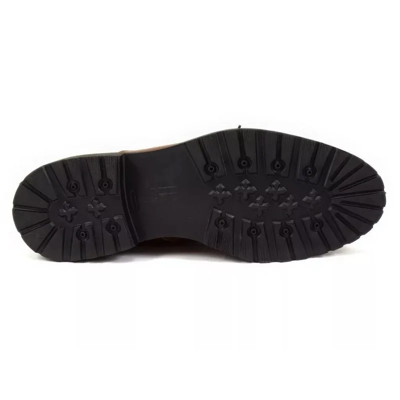 Wnętrze butów zostało wyposażone w ocieplinę, która skutecznie chroni stopę przed chłodem i zapewnia komfort termiczny w niskich temperaturach. Lekka podeszwa typu traktor gwarantuje dobrą amortyzację oraz zwiększoną przyczepność na śliskich nawierzchniach. Trzewiki zimowe koniakowe sprawdzają się zarówno w warunkach miejskich, jak i podczas codziennych aktywności zimą.