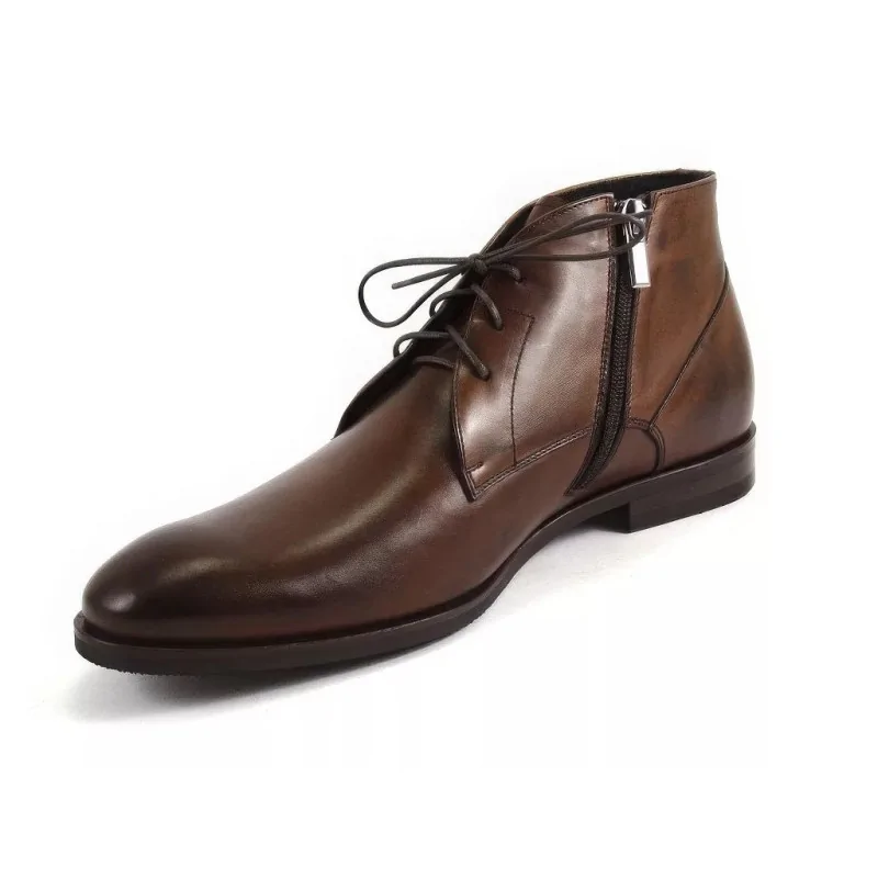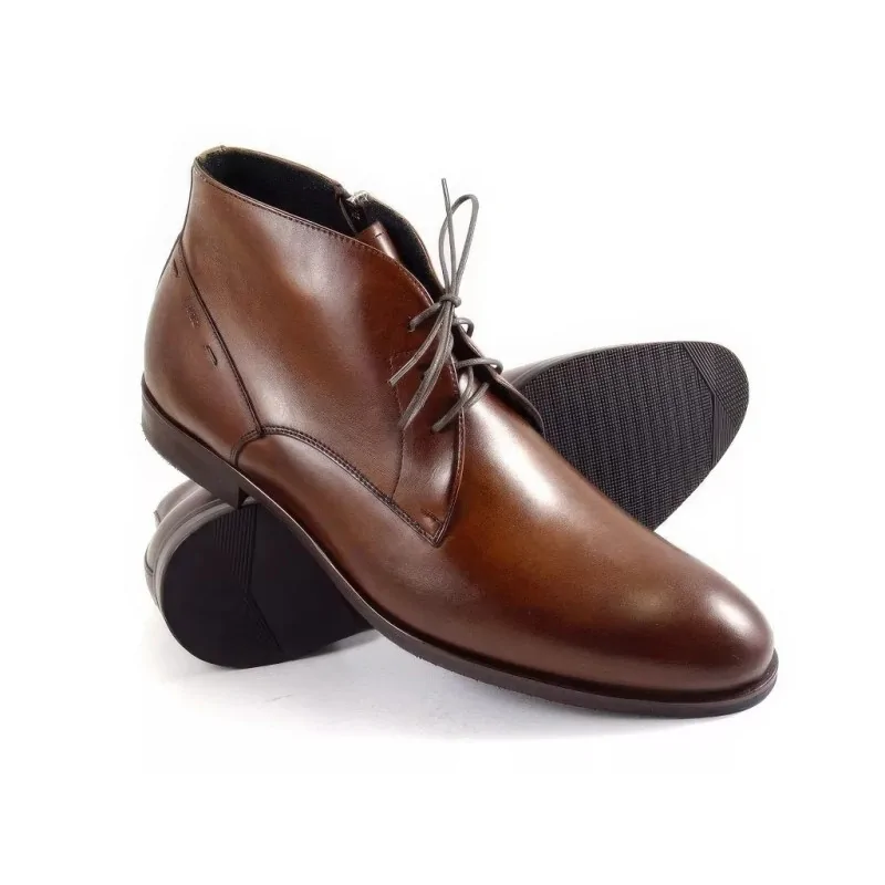 Eleganckie trzewiki zimowe orzechowe w fasonie derby, wykonane z wysokiej jakości skóry naturalnej, z ociepliną oraz praktycznym suwakiem od wewnętrznej strony. Komfortowe męskie buty zimowe premium o klasycznej linii, idealne do stylizacji biznesowych i smart casual w sezonie zimowym.