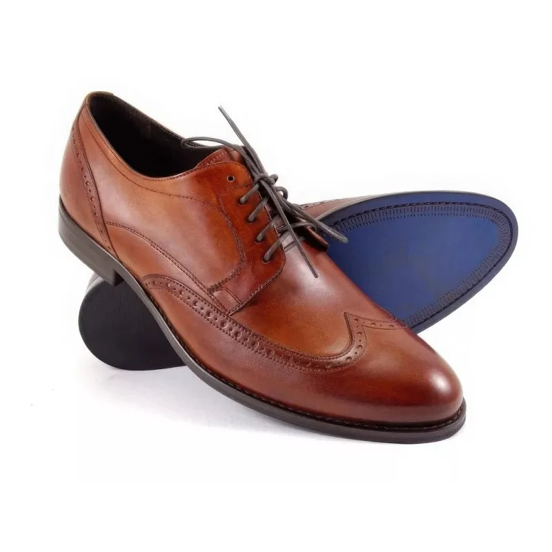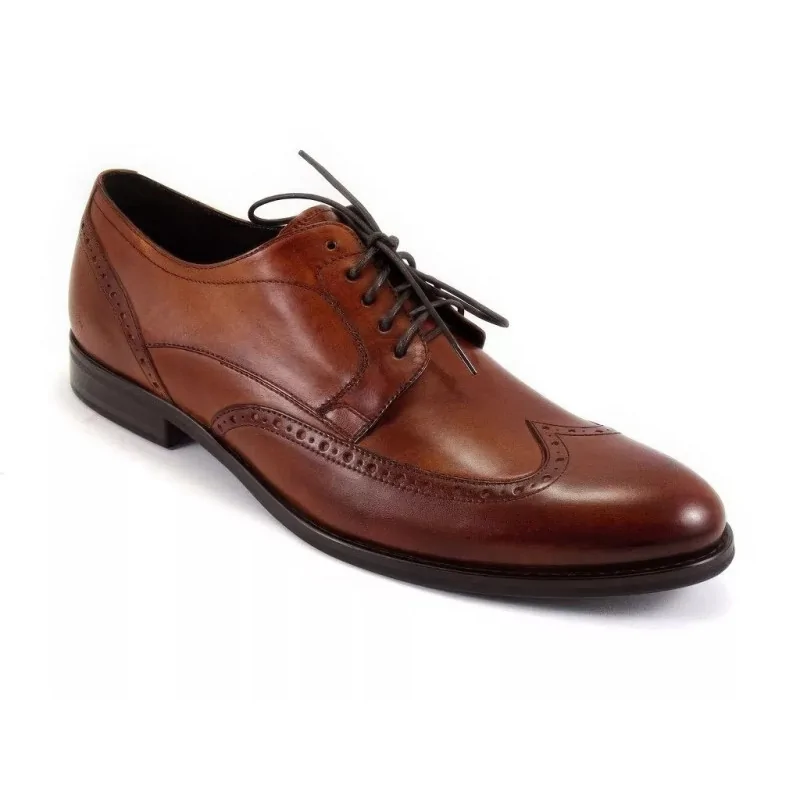 Bogaty odcień brązu (koniak) z delikatnym połyskiem pasuje do granatowego, grafitowego i beżowego garnituru oraz do stylizacji smart casual. Brogsy derby męskie 1639 sprawdzą się w biurze, na spotkaniu biznesowym i na mniej formalnych okazjach – brogowanie dodaje lekkości wizualnej bez rezygnacji z elegancji.