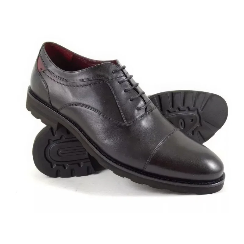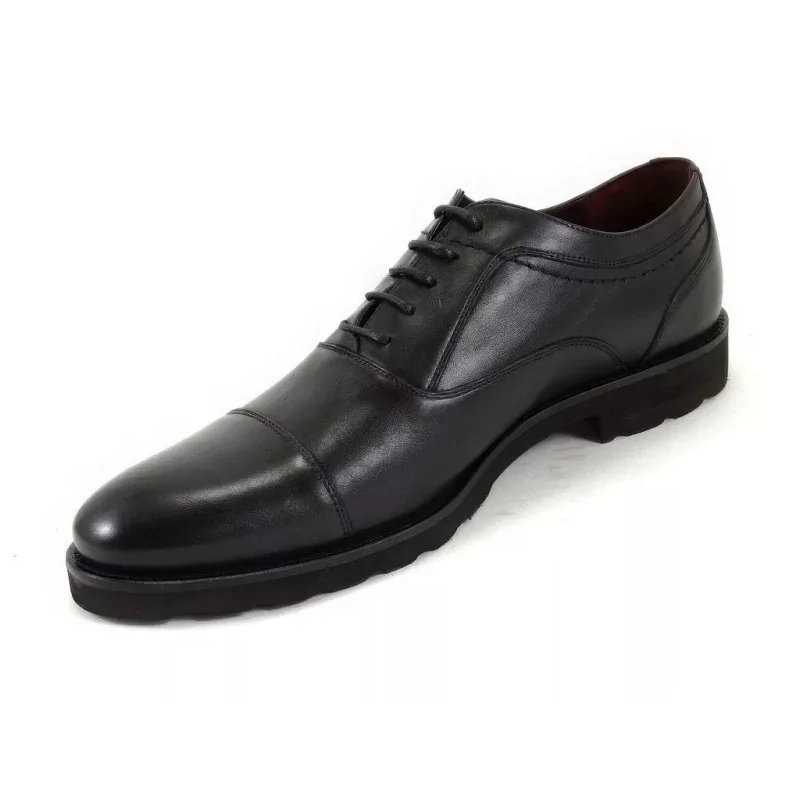 Model PW045 wyposażono w lekką, nowoczesną podeszwę z pianki o wyraźnym bieżniku. Rozwiązanie to zapewnia bardzo dobrą amortyzację, przyczepność oraz skuteczną izolację od podłoża. Dzięki temu derby męskie czarne sprawdzają się zarówno w biurze, jak i podczas dłuższego użytkowania w ciągu dnia.