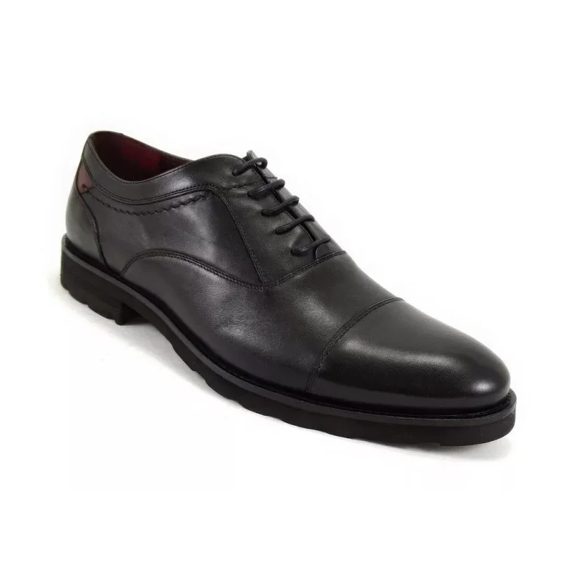 But posiada cztery pary eyeletów, co gwarantuje stabilne dopasowanie i elegancki, proporcjonalny wygląd przyszwy. To buty derby męskie czarne premium, które doskonale wpisują się w styl biznesowy i formalny.
