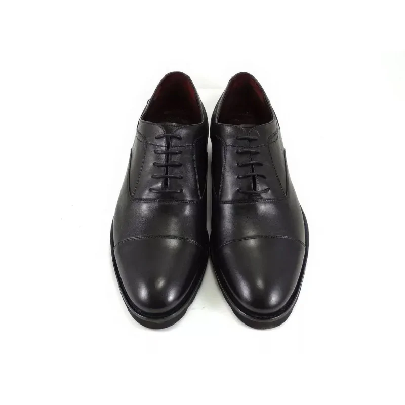Derby męskie czarne PW045 to elegancki model premium wykonany z wysokogatunkowej skóry naturalnej. Klasyczny fason z nakładanym noskiem (cap toe) oraz czterema parami eyeletów podkreśla ponadczasowy charakter obuwia.
