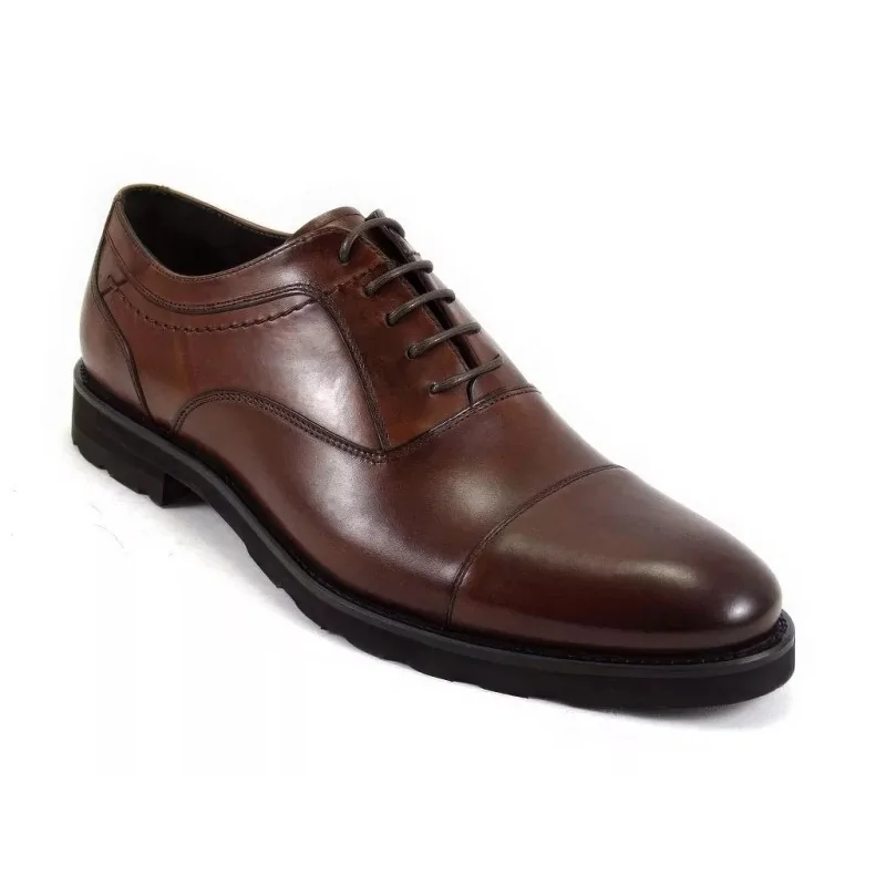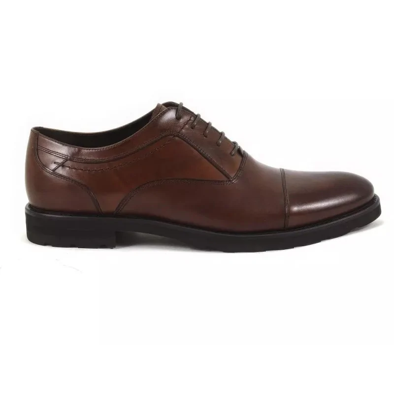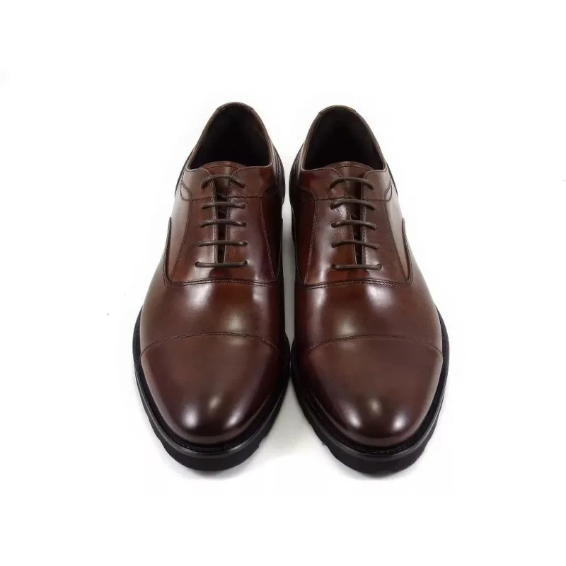 Naturalna skóra w odcieniu orzecha posiada subtelne przejścia tonalne, które nadają głębi i elegancji. To skórzane derby męskie, które zachowują estetykę przez długi czas i nie tracą formy przy regularnym użytkowaniu.
