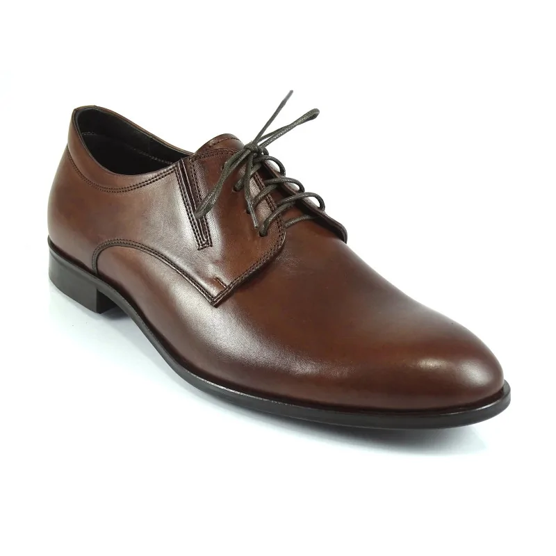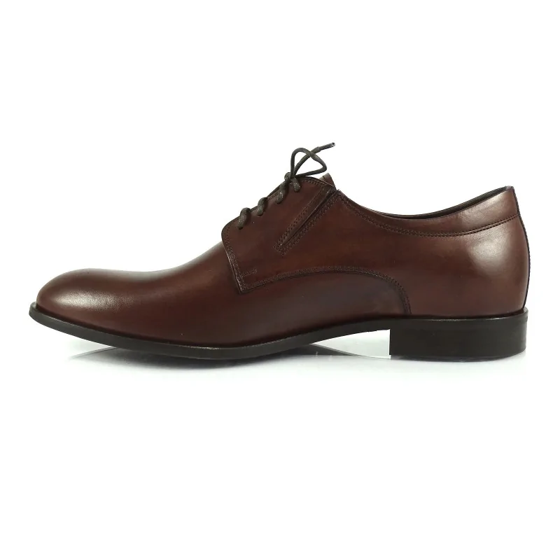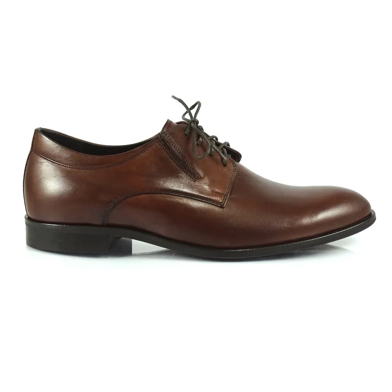 Derby orzechowe męskie Pilpol Prato PW165 to eleganckie obuwie premium o klasycznej konstrukcji z otwartą przyszwą i zwiększonej tęgości. Wykonane ze skóry naturalnej, z minimalistycznym noskiem i elastycznymi wstawkami, zapewniają wysoki komfort oraz ponadczasowy styl do garnituru, ślubu i stylizacji biznesowych.