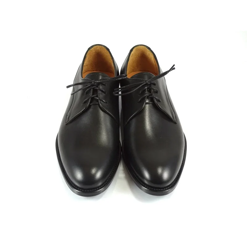 Model wyróżnia się czystą, jednolitą cholewką wykonaną z wysokiej jakości skóry naturalnej licowej o eleganckim połysku. Brak dodatkowych zdobień sprawia, że czarne derby skórzane eleganckie prezentują się wyjątkowo elegancko i formalnie. Subtelne przeszycia oraz harmonijne proporcje kopyta podkreślają profesjonalny charakter modelu.