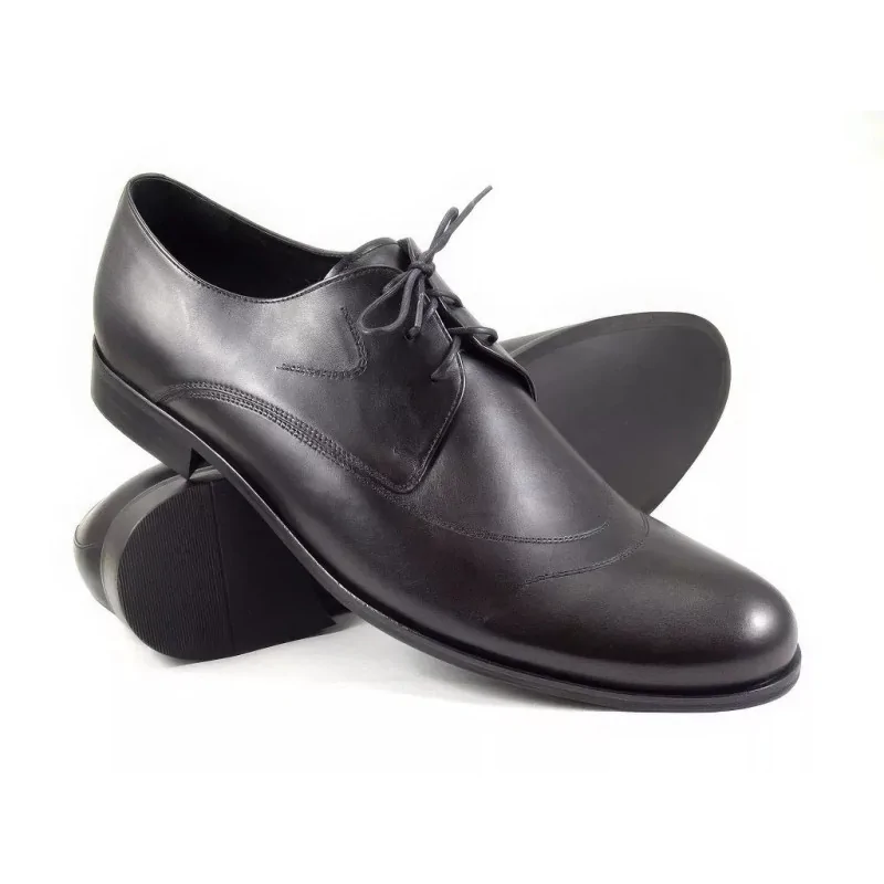 Derby czarne męskie Pilpol 637 to eleganckie buty wizytowe premium o zwiększonej tęgości, wykonane z wysokiej jakości skóry naturalnej. Klasyczna konstrukcja z otwartą przyszwą i minimalistycznym noskiem zapewnia komfort, dopasowanie oraz ponadczasowy styl do garnituru i stylizacji biznesowych.