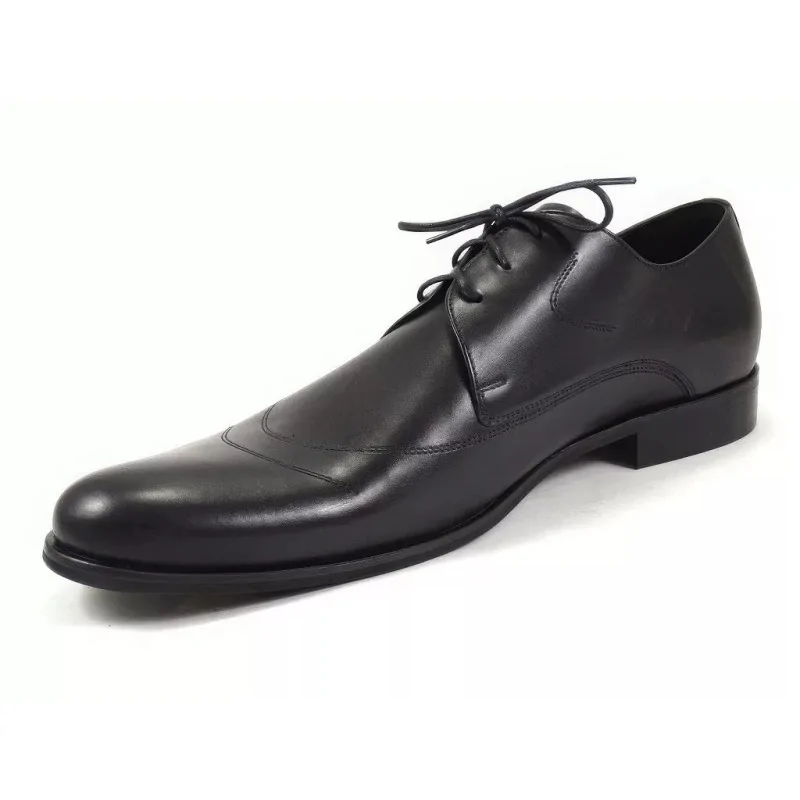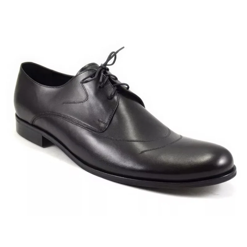 Model utrzymany jest w klasycznej, minimalistycznej stylistyce z gładkim noskiem bez perforacji i ozdobników. Derby czarne pilpol doskonale wpisują się w formalny dress code, oferując uniwersalny wygląd odpowiedni do garnituru, stylizacji biznesowych oraz oficjalnych wydarzeń.