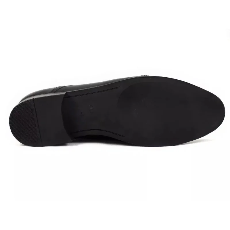 Konstrukcja z otwartą przyszwą pozwala na lepsze dopasowanie do szerszej stopy, co sprawia, że derby czarne męskie Pilpol 790 zapewniają wygodę nawet podczas wielogodzinnego użytkowania. Odpowiednio zaprojektowane kopyto zwiększa przestrzeń w przedniej części buta, jednocześnie zachowując elegancki i smukły wygląd.