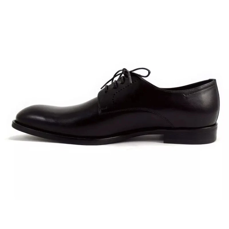 Klasyczna forma plain toe oraz pięć par eyeletów sprawiają, że są to eleganckie czarne derby męskie skórzane doskonałe do garnituru, stylizacji biznesowych oraz formalnych okazji.