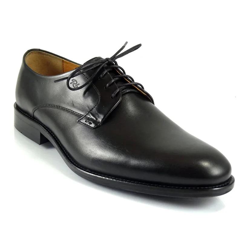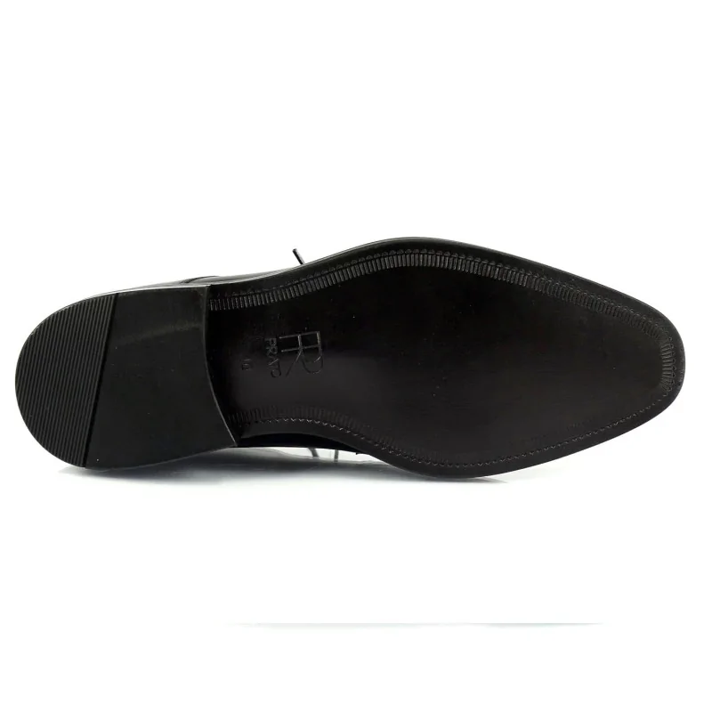 Derby Czarne Pilpol Prato PW233 to eleganckie derby czarne Pilpol Prato stworzone dla mężczyzn ceniących ponadczasową klasykę i najwyższą jakość wykonania. Minimalistyczna forma z gładkim noskiem (plain toe) oraz otwartą przyszwa sprawia, że model idealnie wpisuje się w formalny dress code i profesjonalny wizerunek.