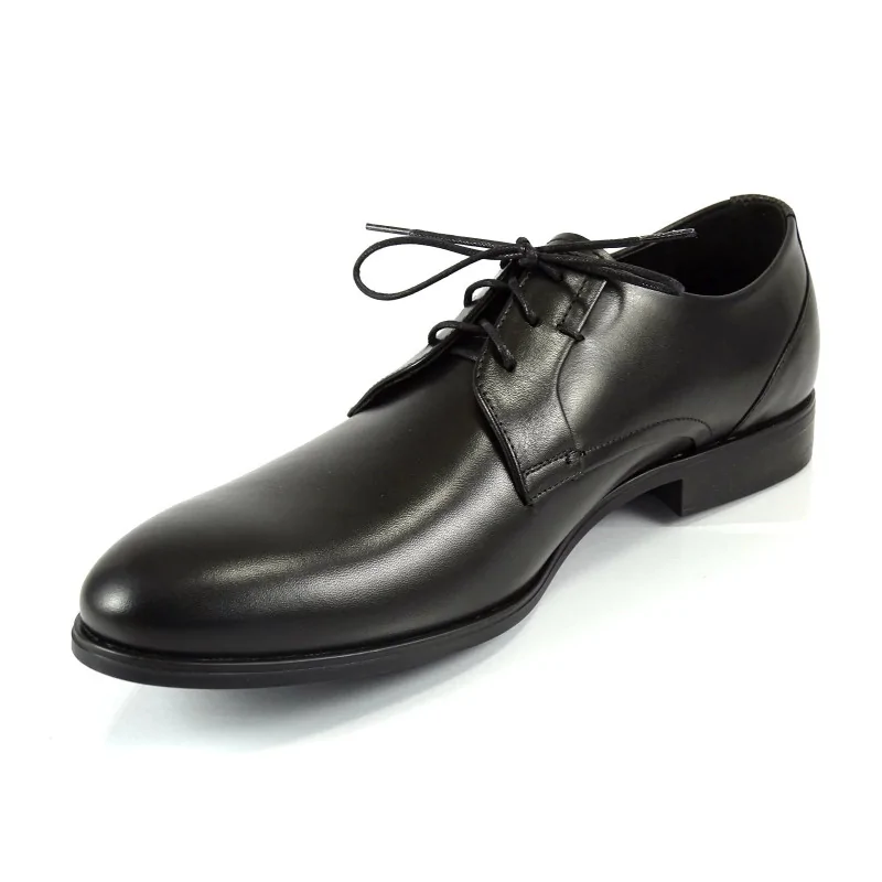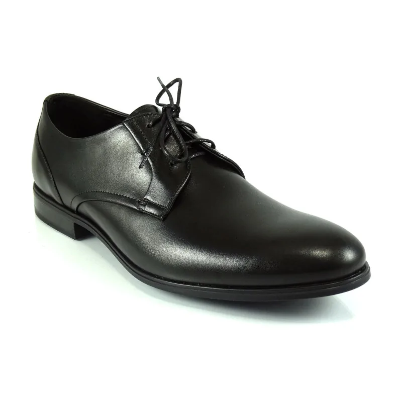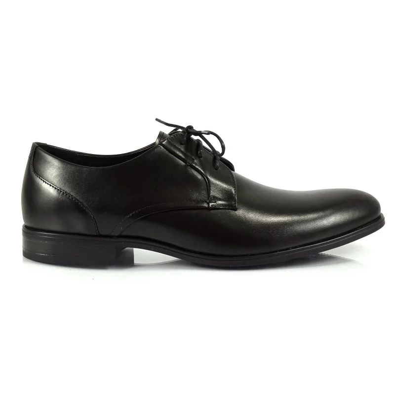Derby czarne skórzane eleganckie Pilpol Prato PW223 to klasyczny model premium o gładkim nosku i otwartej przyszwa. Wykonane z wysokiej jakości skóry naturalnej, zapewniają formalny wygląd oraz komfort użytkowania w stylizacjach biznesowych i wizytowych.