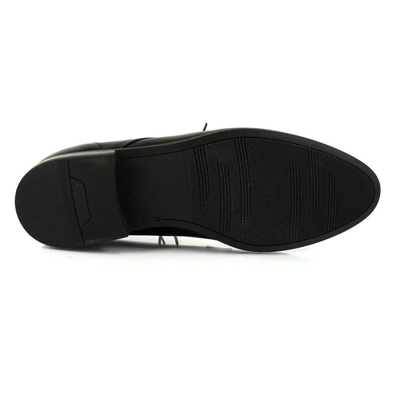 Wnętrze buta wykończone zostało z dbałością o komfort, dzięki czemu derby czarne skórzane eleganckie sprawdzą się zarówno podczas całodziennej pracy w biurze, jak i podczas uroczystości wymagających wielogodzinnego noszenia eleganckiego obuwia.