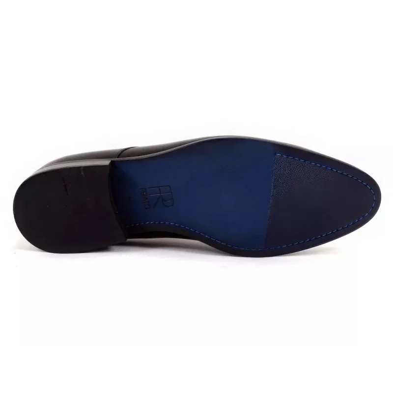 Derby męskie czarne Premium Pilpol Prato PW007 to eleganckie derby męskie wykonane z wysokogatunkowej skóry cielęcej, osadzone na trwałej podeszwie typu tuniskór. Otwarta przyszwa zapewnia wygodne dopasowanie, a subtelna rozetka na pięcie dodaje modelowi charakteru. To wyjątkowo komfortowe buty czarne o ponadprzeciętnej trwałości – idealne do garnituru, pracy i formalnych okazji.