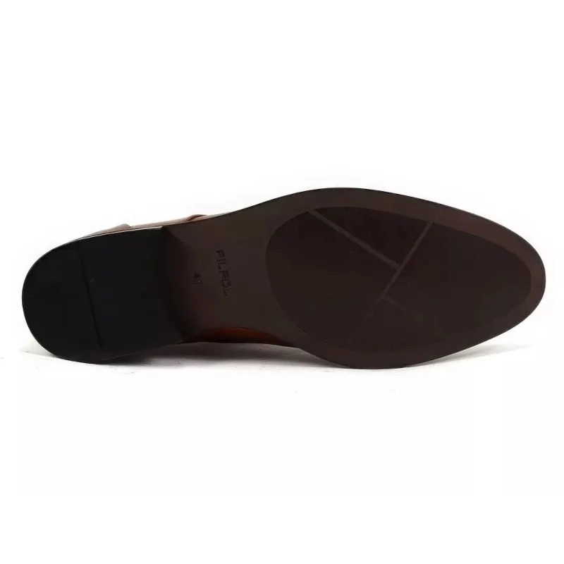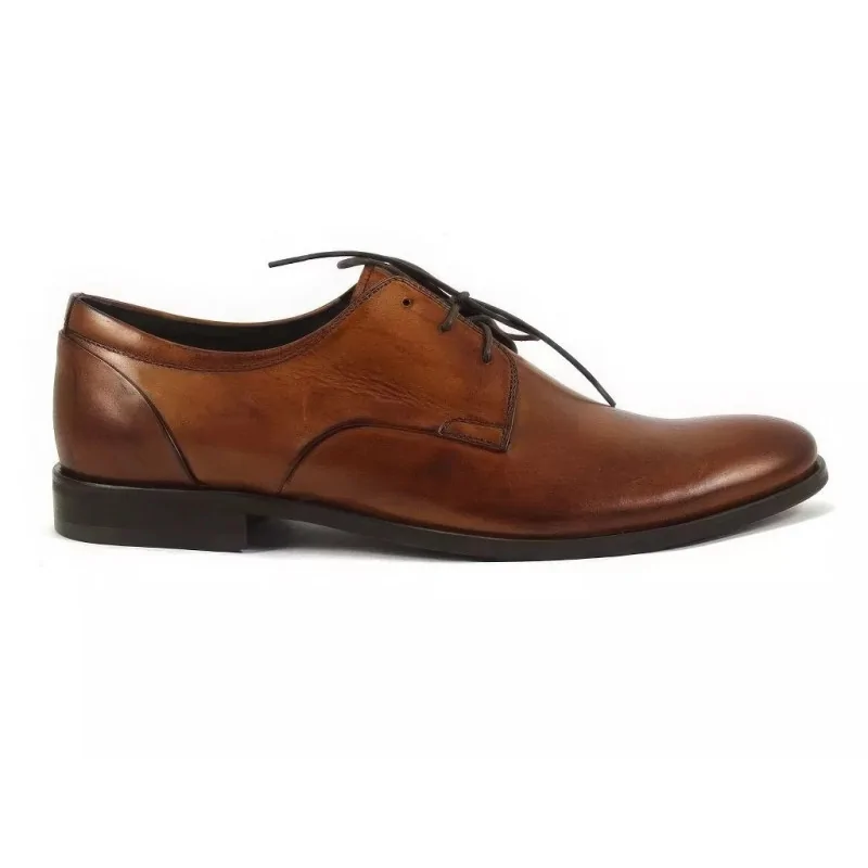 Derby męskie koniak Pilpol 1609 to propozycja dla mężczyzn, którzy cenią klasyczną elegancję i uniwersalność. Model łączy charakterystyczny fason derby z otwartą przyszwą oraz ciepły, szlachetny kolor koniak z delikatnym połyskiem i burnishingiem – dzięki temu buty wyglądają na dopracowane i premium.