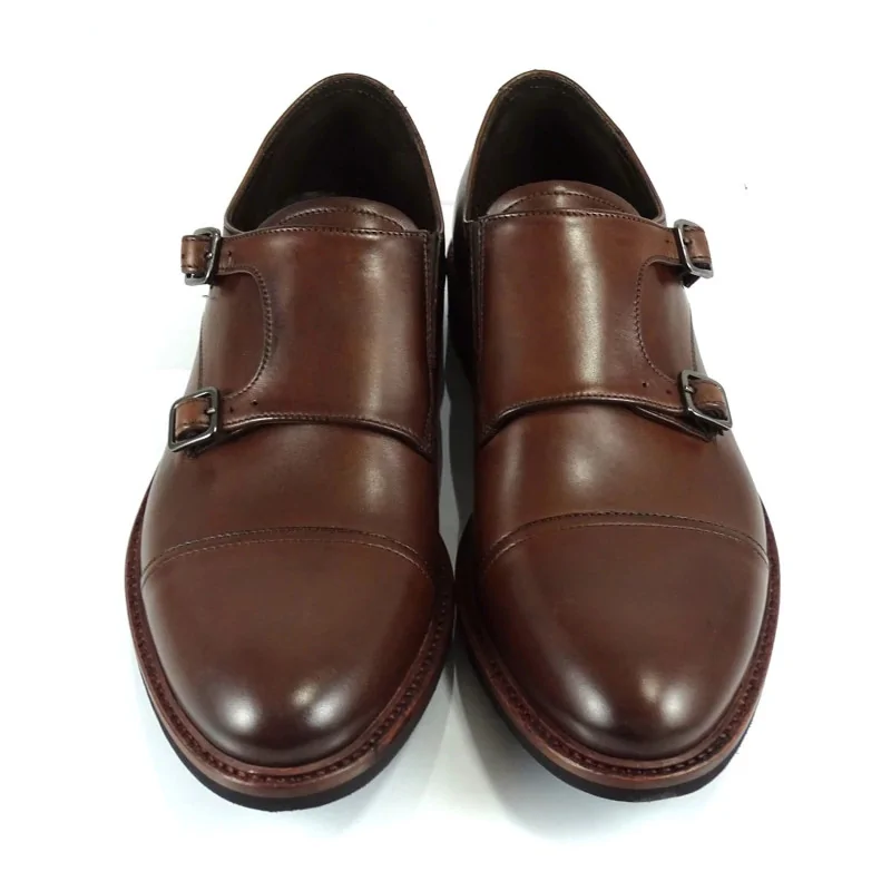 Orzechowy kolor doskonale komponuje się z granatowymi, grafitowymi oraz beżowymi garniturami, a także z eleganckimi spodniami chino i marynarką. Monki cap toe premium to świetny wybór na spotkania biznesowe, uroczystości rodzinne, eventy oraz stylizacje smart casual. Wyrazista podeszwa i klasyczna forma sprawiają, że model wyróżnia się na tle tradycyjnego obuwia wizytowego.