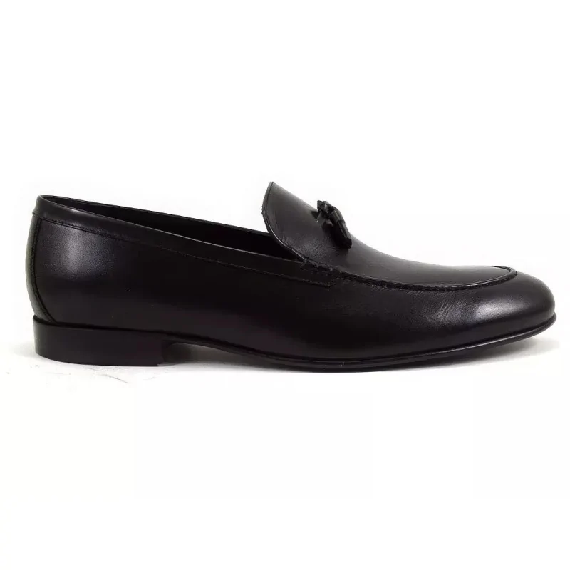 Wsuwana forma loafersów zapewnia wygodę oraz szybkie zakładanie, bez konieczności sznurowania. Mokasynowe szycie na przodzie cholewki zwiększa elastyczność i dopasowanie do stopy, a subtelne chwosty podkreślają elegancki styl modelu. Dzięki temu eleganckie loafersy czarne męskie doskonale sprawdzają się jako buty męskie do biura, na spotkania biznesowe oraz oficjalne wydarzenia.