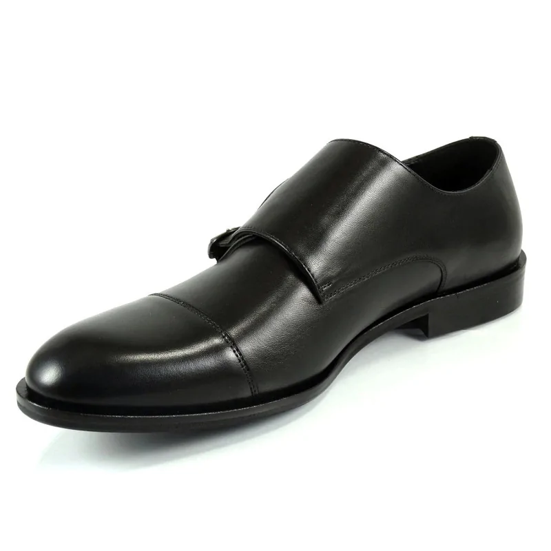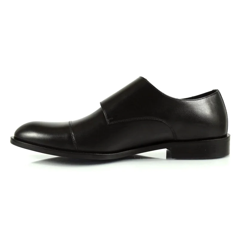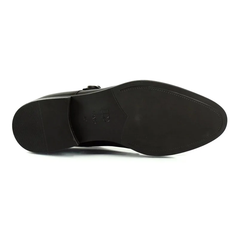 Cholewka została wykonana z wysokogatunkowej skóry naturalnej licowej w klasycznym, głębokim odcieniu czerni. Gładka powierzchnia skóry oraz subtelne przeszycie na nosku typu cap toe podkreślają formalny charakter modelu. Monki czarne skórzane eleganckie prezentują się elegancko i profesjonalnie, co czyni je idealnym wyborem do garnituru.