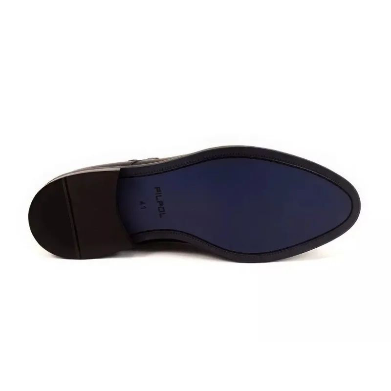 Monki męskie czarne Pilpol 1669 to model z segmentu Premium, zaprojektowany dla mężczyzn, którzy cenią wyrafinowaną elegancję i ponadczasowy styl. To eleganckie monki męskie typu double monk, czyli fason zapinany na dwie klamry, będący alternatywą dla klasycznych oxfordów i derby.