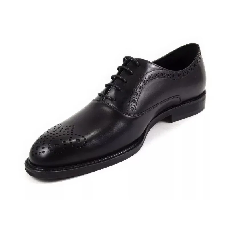 Oxfordy czarne męskie Pilpol Prato PW161 to eleganckie obuwie wizytowe premium z zamkniętą przyszwą i ozdobnym medalionem na nosku. Klasyczna forma, skóra naturalna oraz smukła linia kopyta zapewniają ponadczasowy styl i wysoki komfort.