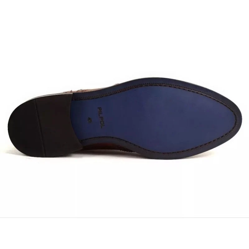 Oxfordy męskie koniak Pilpol 1666 to eleganckie oxfordy męskie brogowane w segmencie premium. Wykonane z wysokiej jakości skóry cielęcej, łączą klasyczny fason z ponadprzeciętną trwałością i komfortem użytkowania.