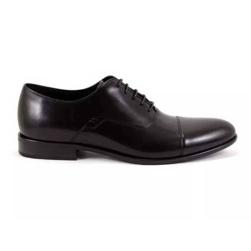 Oxfordy męskie czarne Pilpol Prato PW022 to najbardziej klasyczna i formalna odsłona męskiego obuwia wizytowego. Konstrukcja typu cap toe z zamkniętą przyszwą sprawia, że są to eleganckie oxfordy męskie rekomendowane do najbardziej oficjalnych okazji.