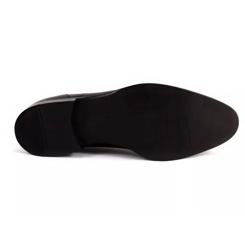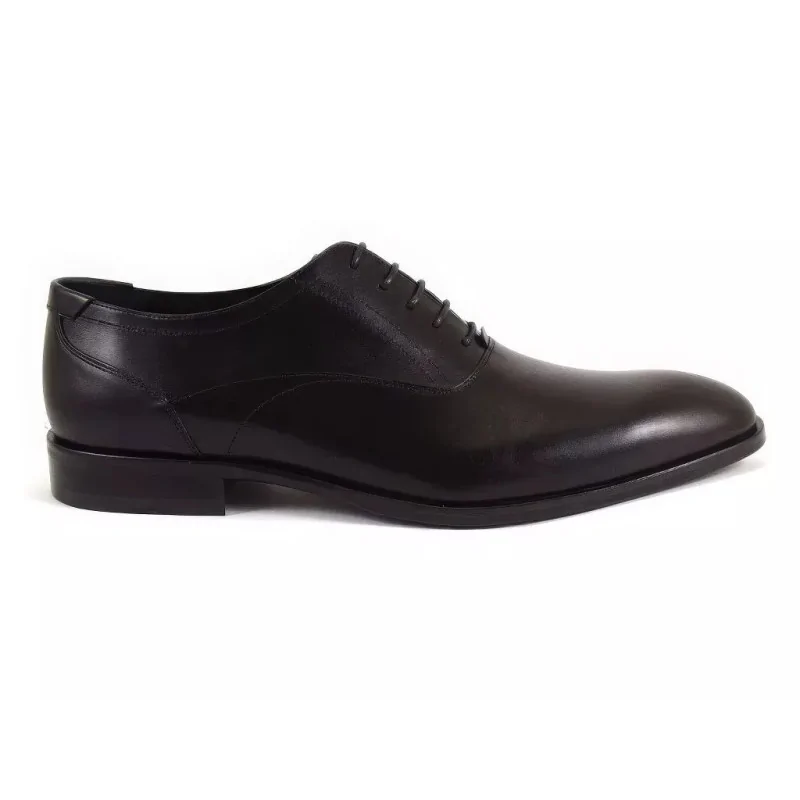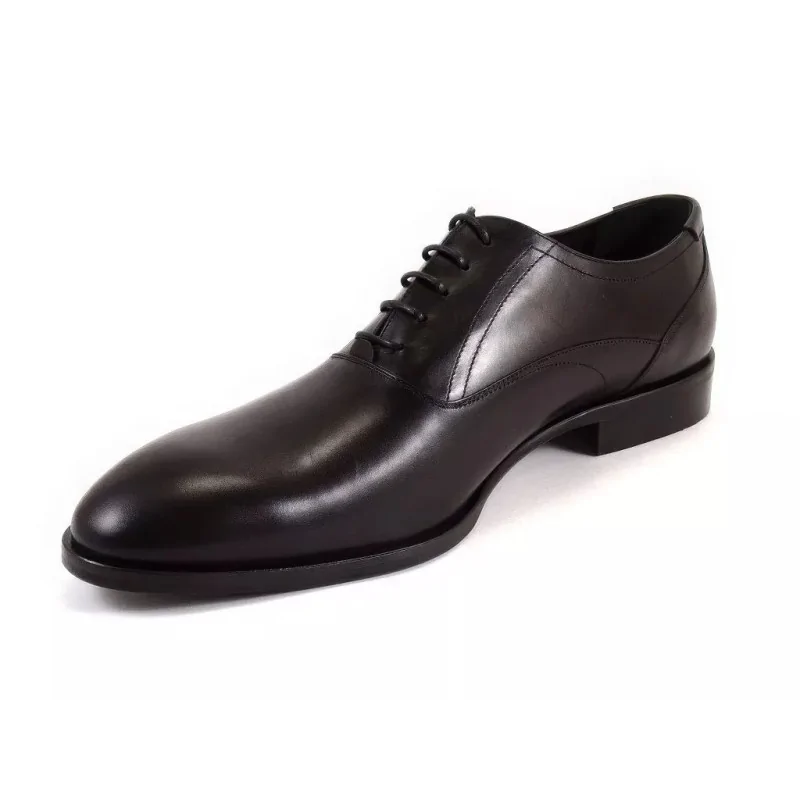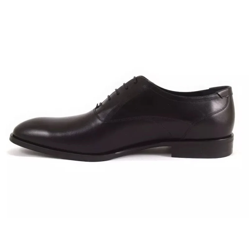 Minimalistyczny nosek typu plain toe oraz smukła, dopracowana linia kopyta nadają modelowi wyjątkowo czysty i ponadczasowy charakter. Głęboki, szlachetny odcień czerni sprawia, że te buty doskonale komponują się z garniturem biznesowym, smokingiem oraz formalnymi stylizacjami wieczorowymi. Jeśli szukasz modelu, który podkreśli profesjonalny wizerunek – czarne oxfordy męskie to wybór najbardziej klasyczny.