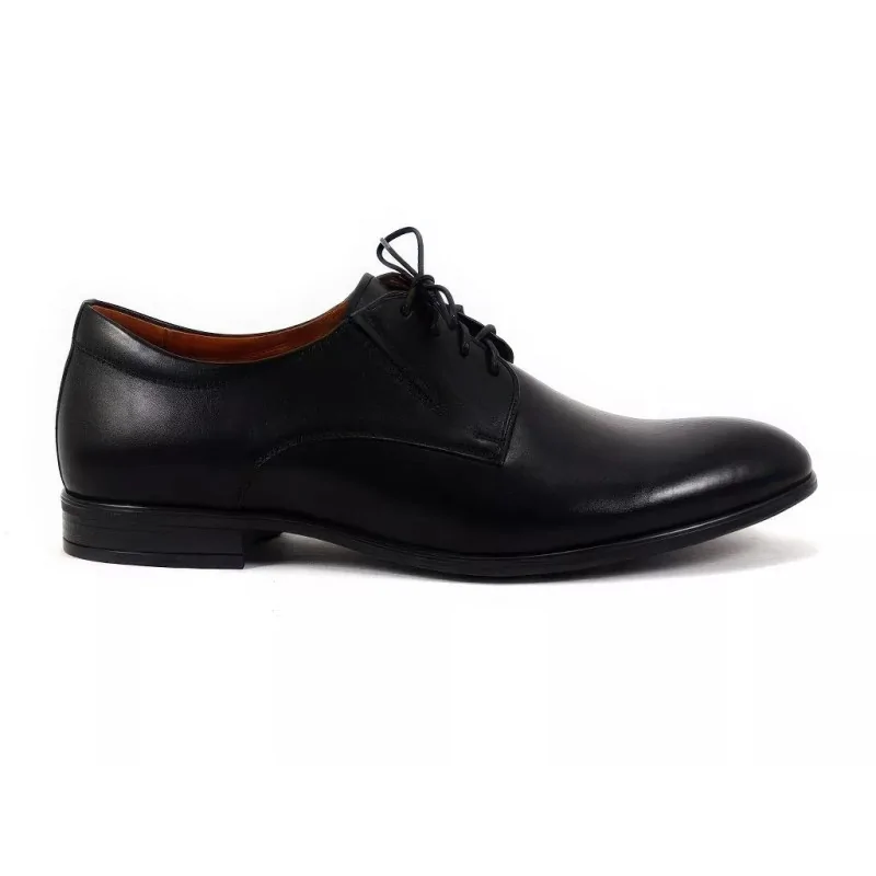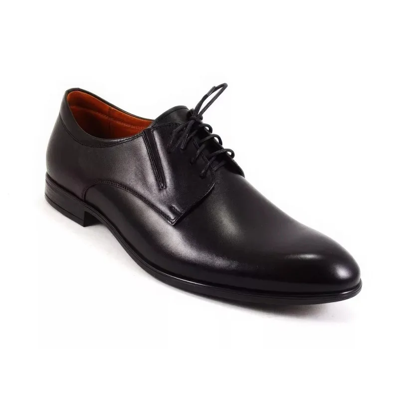 Derby czarne męskie Pilpol 1746 to eleganckie obuwie wizytowe w segmencie regular, zaprojektowane z myślą o komforcie użytkowania oraz dopasowaniu do stopy o większej tęgości. Model derby czarne pilpol wyróżnia się klasyczną konstrukcją, gładką skórzaną cholewką oraz elastycznymi wstawkami, które zwiększają wygodę podczas codziennego noszenia.