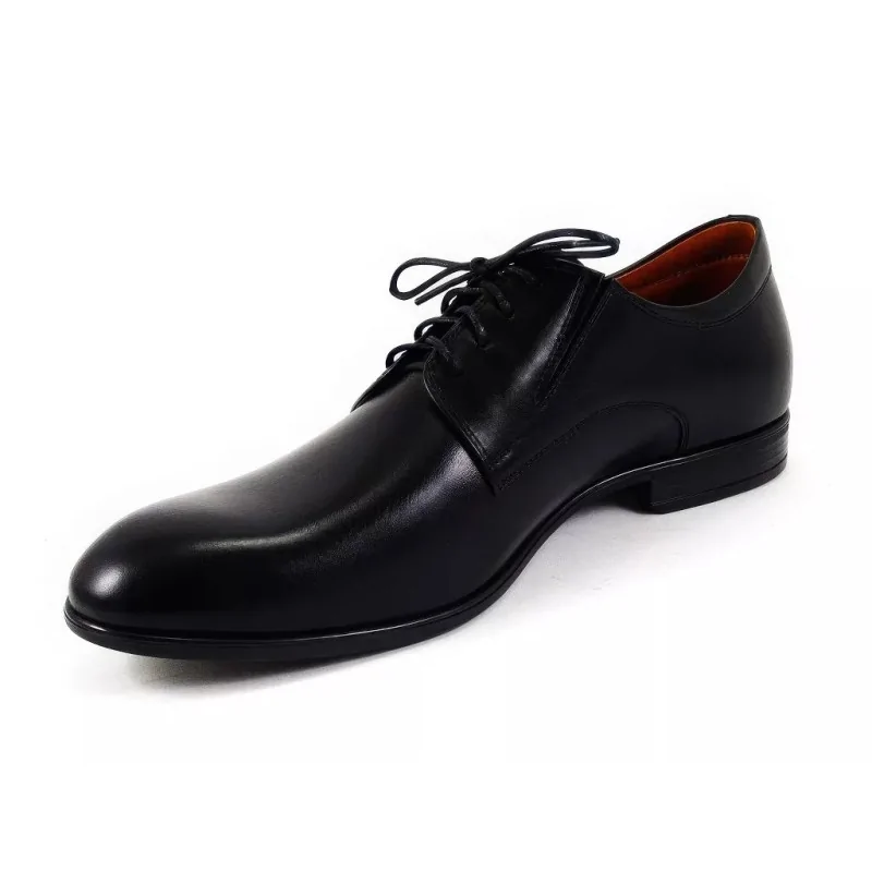 Cholewka została wykonana z wysokiej jakości skóry naturalnej o gładkim wykończeniu, które podkreśla formalny charakter obuwia. Klasyczny czarny kolor sprawia, że derby czarne pilpol doskonale komponują się z eleganckimi stylizacjami, garniturem biznesowym oraz strojem wizytowym. Gładki nosek bez perforacji wzmacnia minimalistyczny i uniwersalny wygląd modelu.