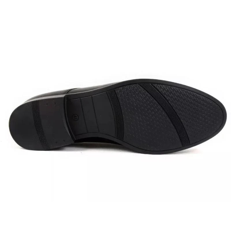 Derby czarne męskie Pilpol 1746 to klasyczne obuwie wizytowe o zwiększonej tęgości, wykonane z naturalnej skóry i wyposażone w elastyczne gumki przy przyszwi. Minimalistyczna linia, gładki nosek oraz konstrukcja derby zapewniają wygodę i elegancki wygląd w stylizacjach formalnych, biznesowych i smart casual.