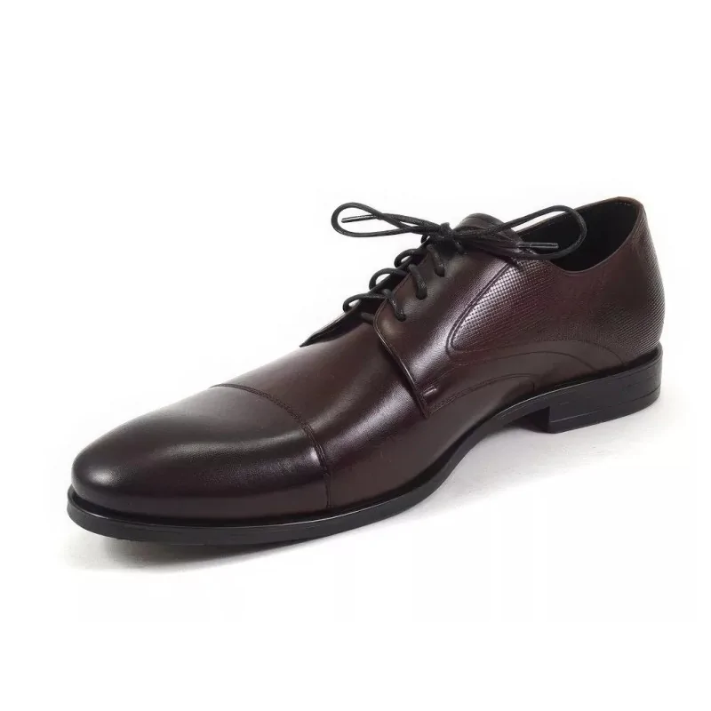 Fason derby z otwartą przyszwą zapewnia lepsze dopasowanie do stopy oraz wysoki komfort użytkowania przez cały dzień. Derby burgundowe męskie to idealny wybór dla mężczyzn ceniących wygodę, stabilność oraz elegancki styl w codziennym użytkowaniu. Klasyczne sznurowanie i ergonomiczne kopyto zwiększają wygodę chodzenia.