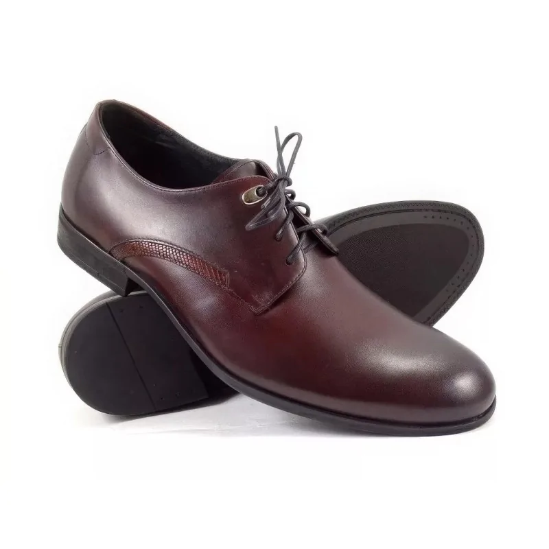 Derby burgundowe męskie Pilpol 1751 to eleganckie buty wizytowe wykonane z wysokiej jakości skóry naturalnej w głębokim odcieniu burgundu. Klasyczna konstrukcja derby z otwartą przyszwą zapewnia wygodne dopasowanie oraz ponadczasowy styl do stylizacji biznesowych, formalnych i smart casual.