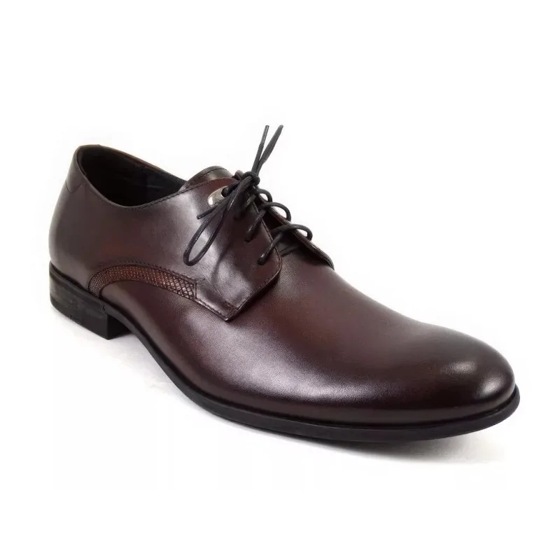 Fason z otwartą przyszwą umożliwia lepsze dopasowanie do stopy oraz wysoki komfort noszenia przez cały dzień. Derby burgundowe męskie doskonale sprawdzają się w pracy biurowej, podczas spotkań biznesowych, uroczystości rodzinnych oraz oficjalnych wydarzeń wymagających eleganckiego obuwia.