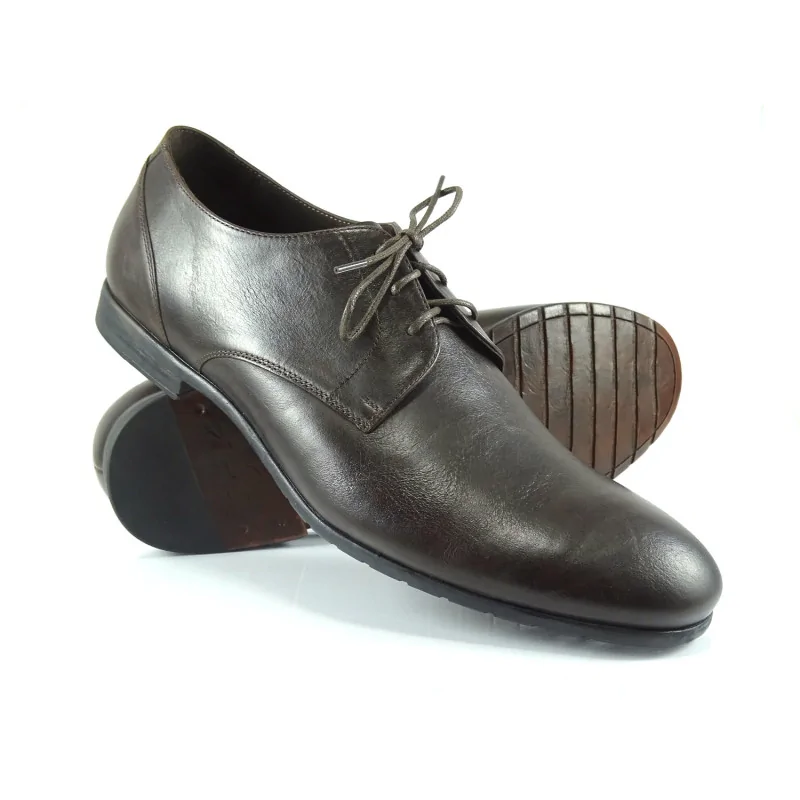 Derby Ciemnobrązowe Pilpol UU21 to klasyczne derby skórzane w segmencie regular, wykonane z wysokiej jakości skóry naturalnej. Model z otwartą przyszwą, gładkim noskiem i elegancką linią cholewki sprawdzi się w stylizacjach biznesowych, wizytowych oraz smart casual.