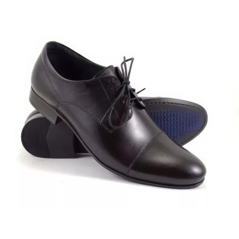 Czarne derby skórzane eleganckie Pilpol 1653 to ponadczasowy model wizytowy zaprojektowany z myślą o klasycznej elegancji i codziennym komforcie użytkowania. Konstrukcja typu derby z otwartą przyszwa zapewnia lepsze dopasowanie do stopy, a minimalistyczna forma z noskiem cap toe podkreśla formalny charakter obuwia. Derby Czarne Pilpol 1653 doskonale wpisują się w styl biznesowy oraz wizytowy.