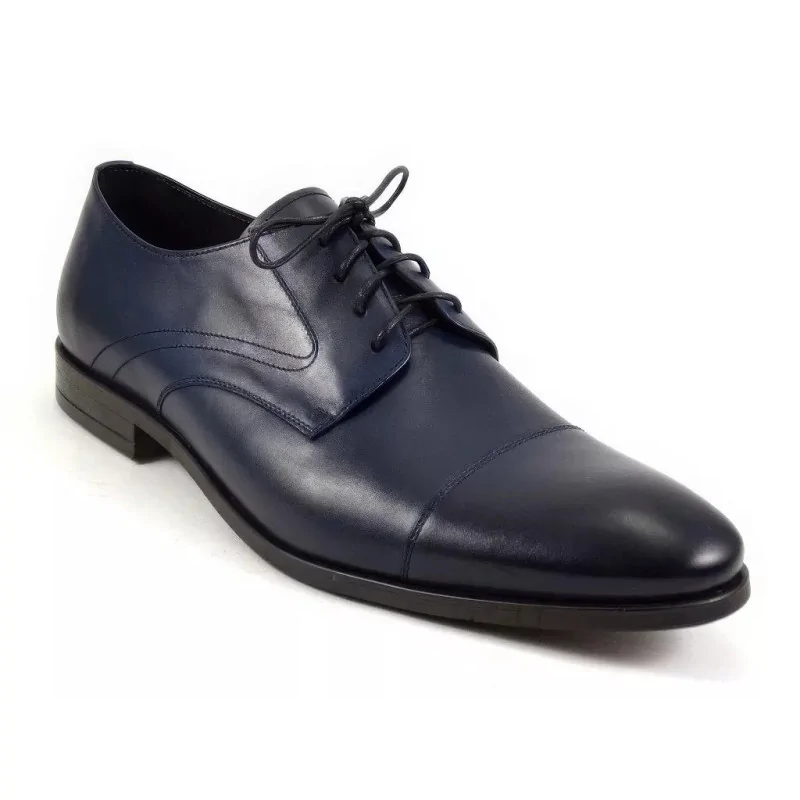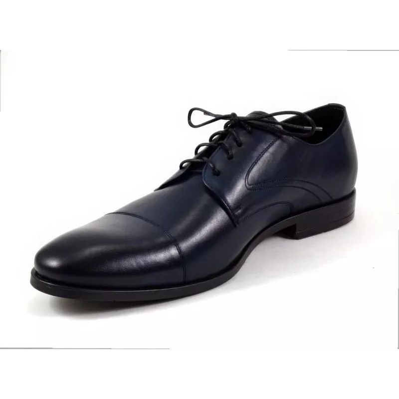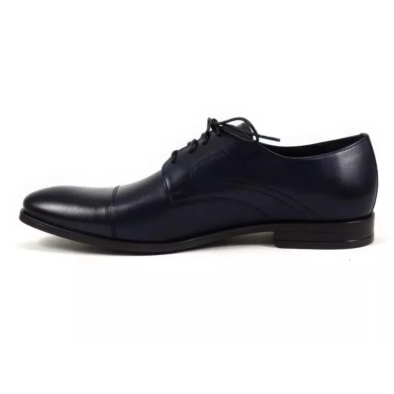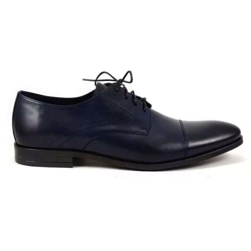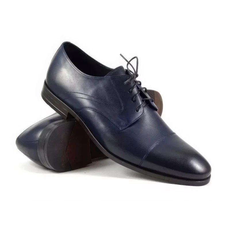 Derby granatowe męskie Pilpol 1750 to eleganckie buty wizytowe z otwartą przyszwą i noskiem cap toe, wykonane z wysokiej jakości skóry naturalnej. Klasyczna konstrukcja derby, głęboki granatowy kolor oraz wygodny fason regular sprawiają, że model idealnie pasuje do stylizacji biznesowych, ślubnych i smart casual.