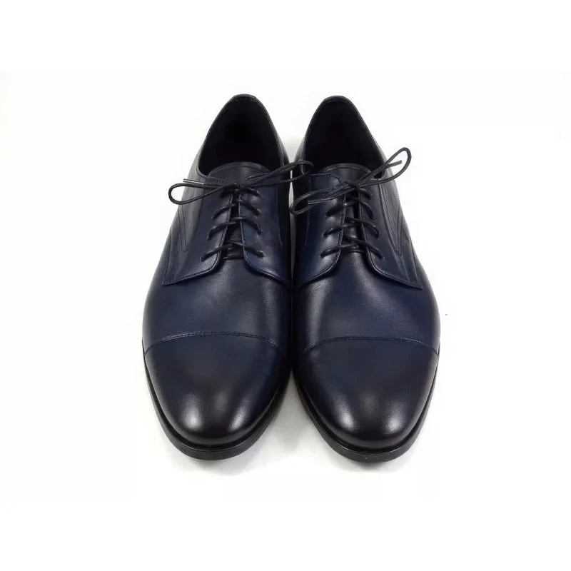 Klasyczny nosek typu cap toe podkreśla formalny charakter obuwia i nadaje mu ponadczasowej elegancji. Derby granatowe pilpol łączą minimalistyczne wzornictwo z dopracowanymi detalami, dzięki czemu świetnie komponują się z garniturem, marynarką oraz stylizacjami smart casual.